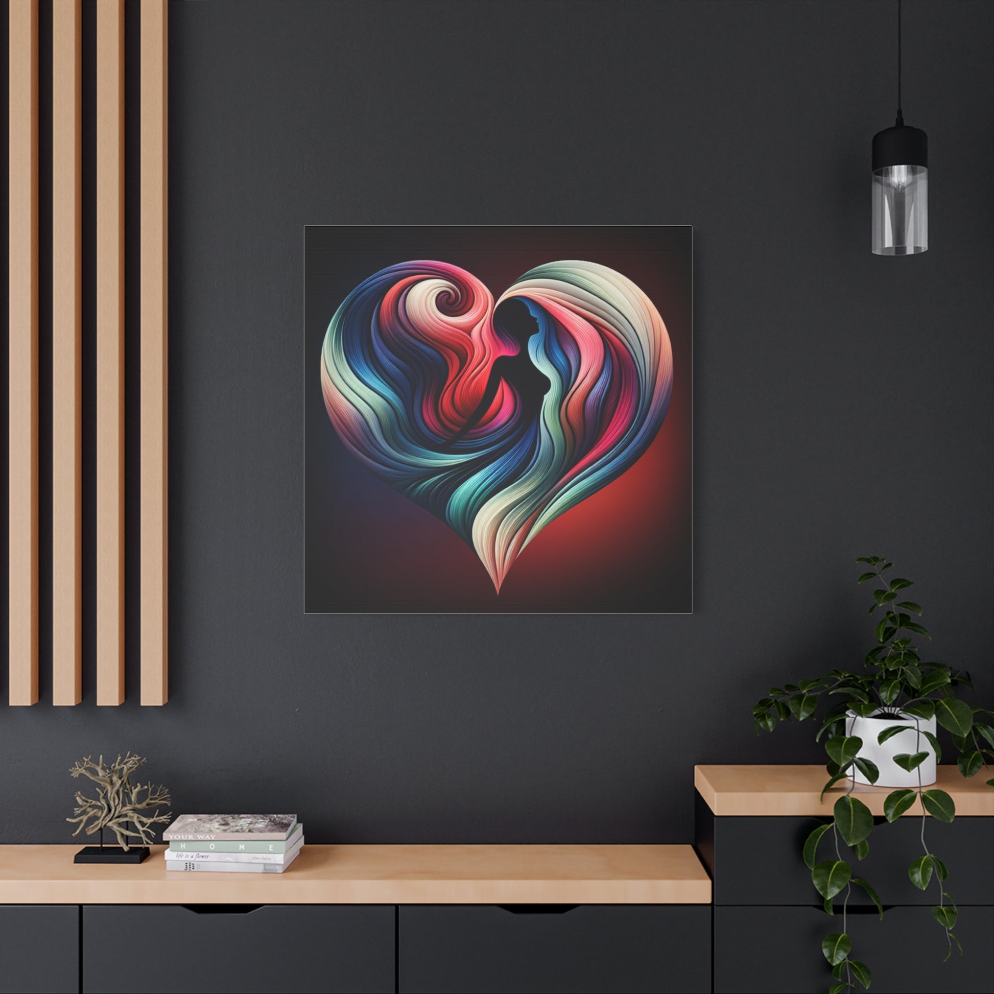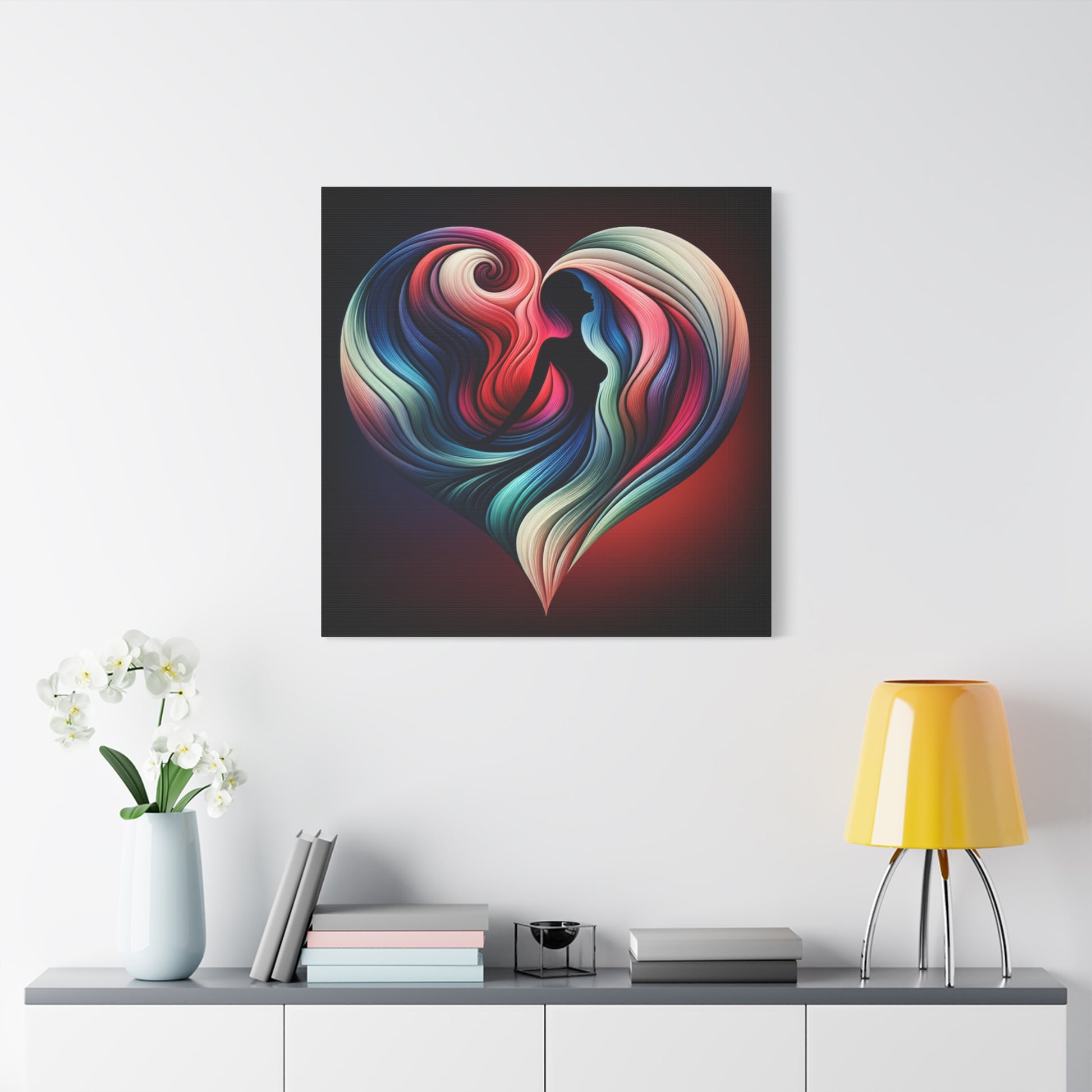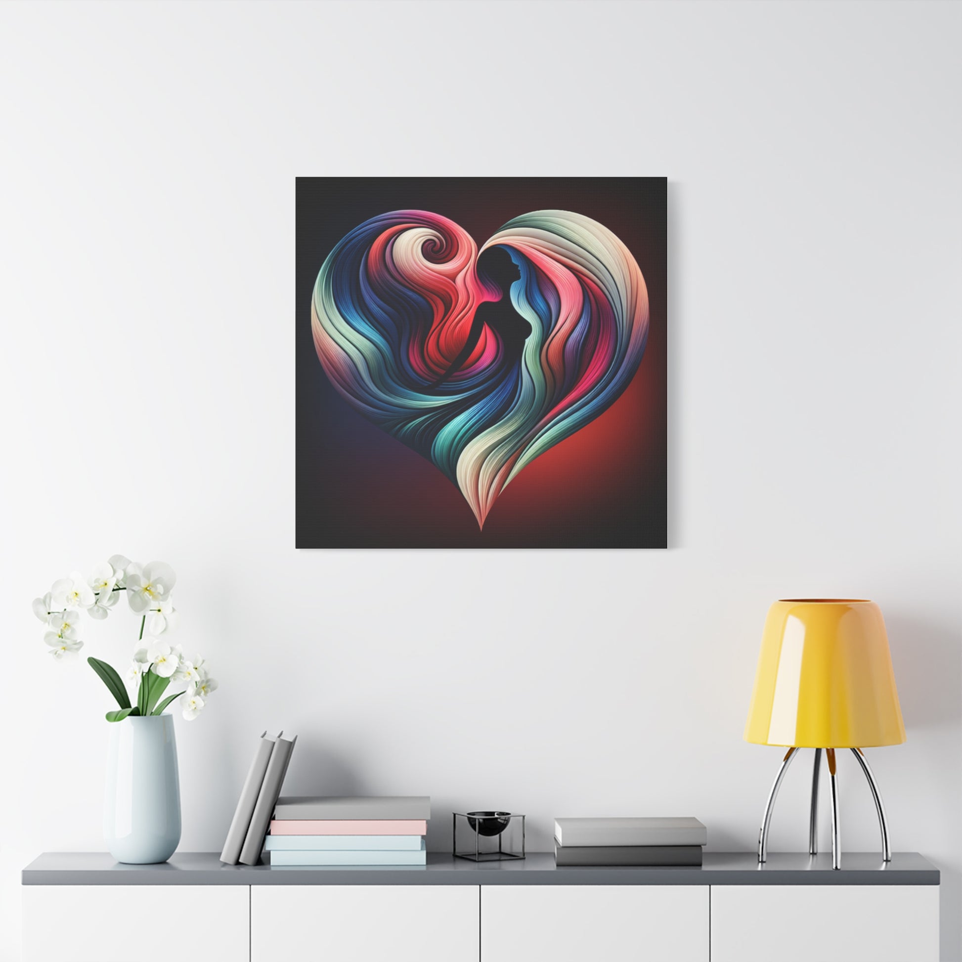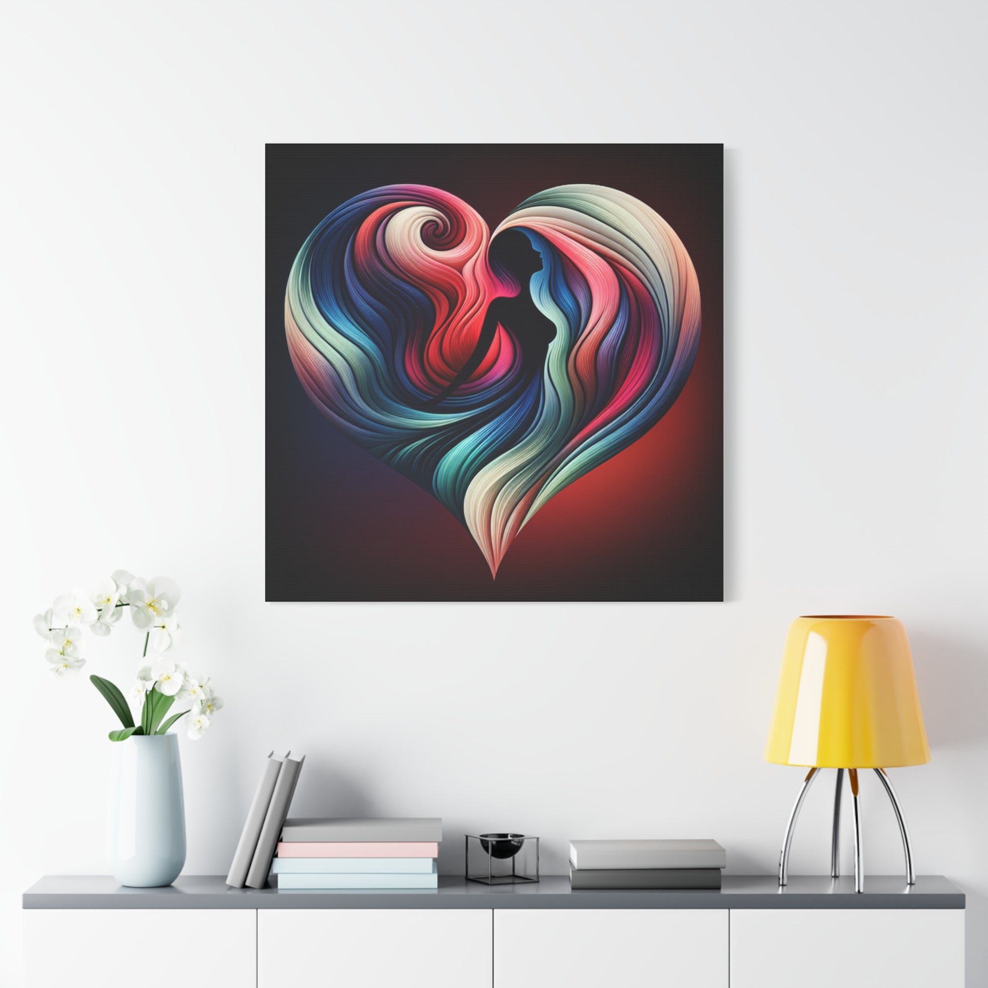 Colorful Heart Feminine Love Wall Art - Colorful Silhouette Canvas